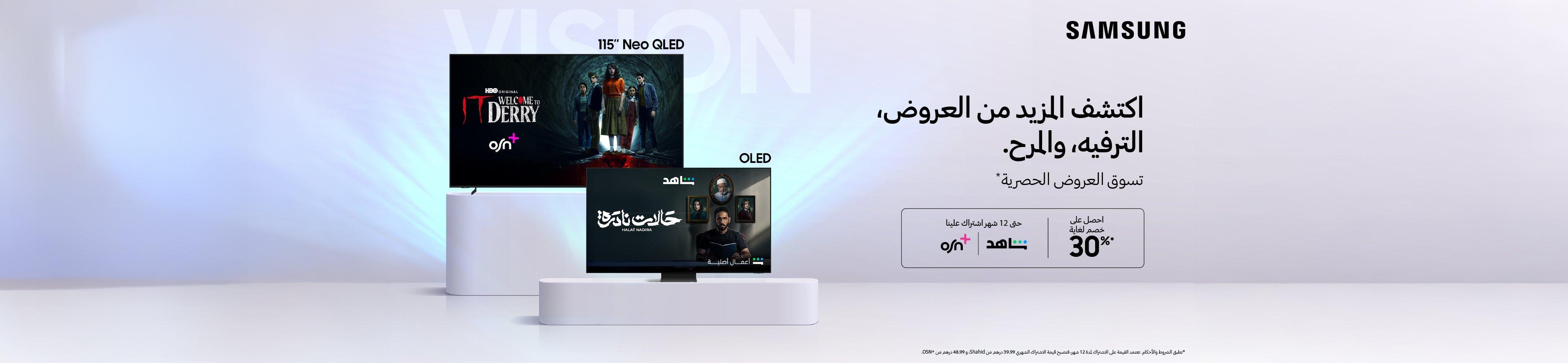 - 1. بموجب العرض الحصري، سيستفيد العملاء من خصم يصل إلى 30٪ على بعض منتجات تلفزيونات سامسونج المختارة.
